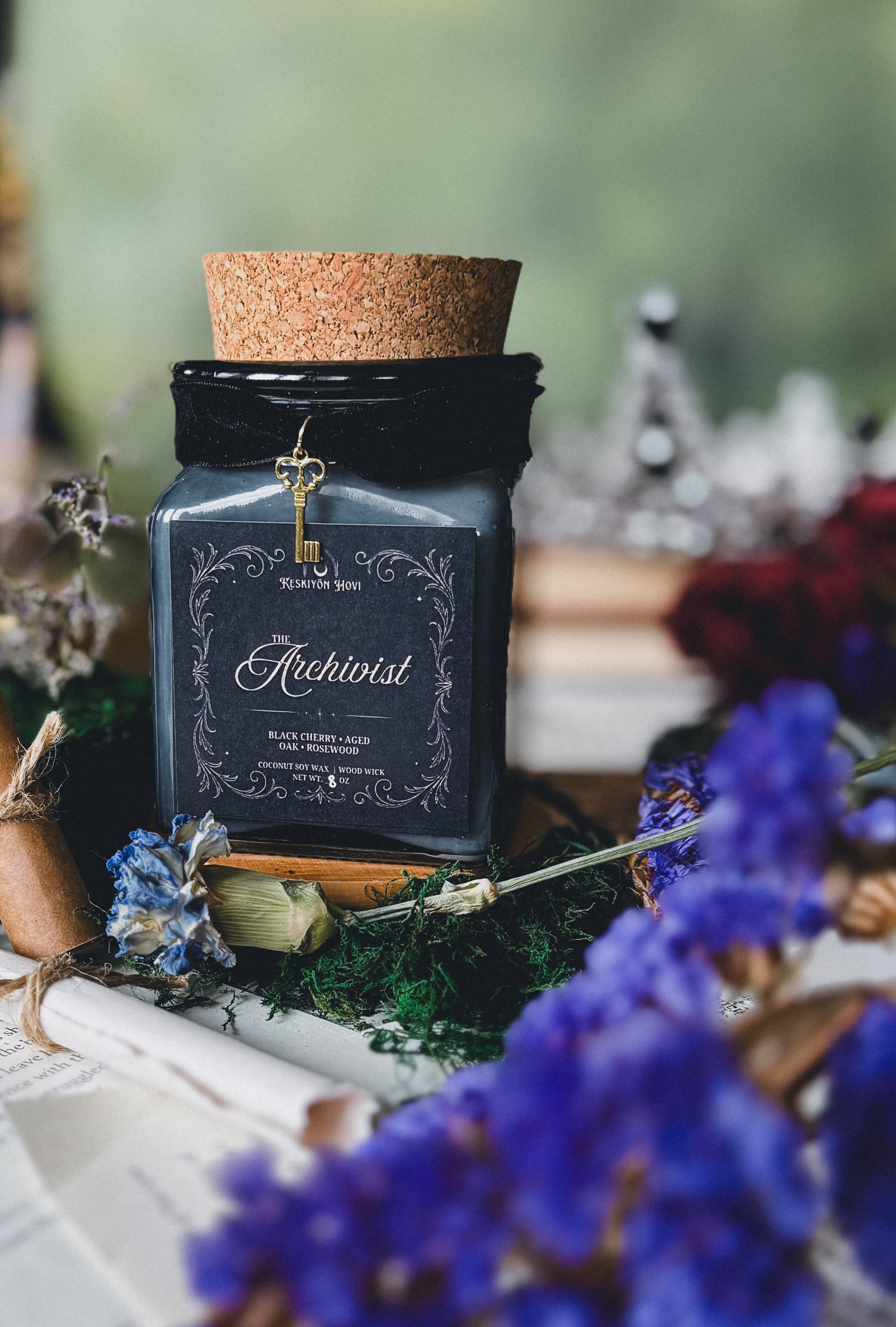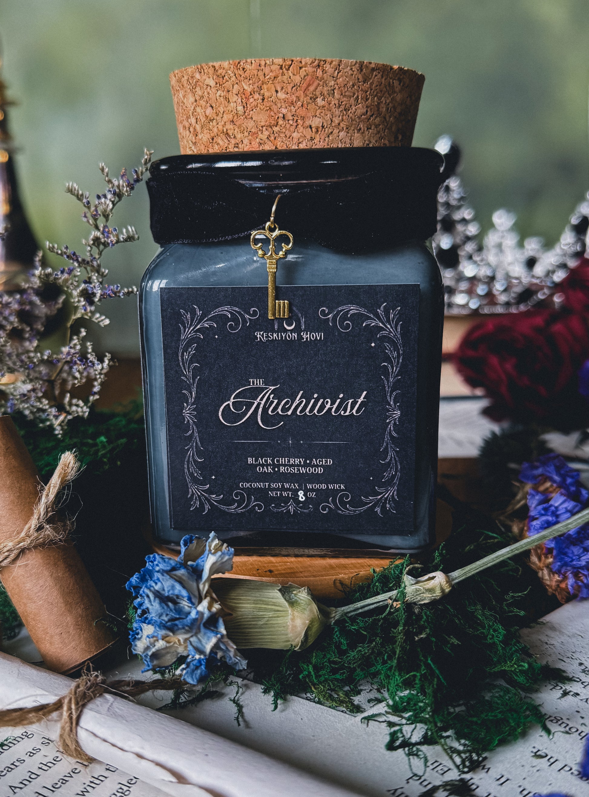 This candle evokes old libraries, secret histories, and the scent of something waiting to be remembered.